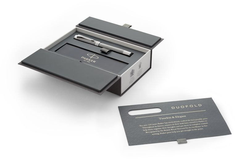 Ручка роллер Parker Duofold Prestige Ruthenium Chiselled CT от официального дилера Parker в Кызыле. Вы можете дополнительно заказать гравировку, которая подчеркнет Вашу оригинальность и придаст памятность статусному подарку. Все ручки Паркер поставляются в фирменном футляре.