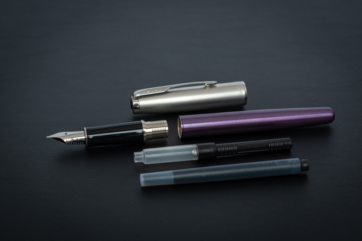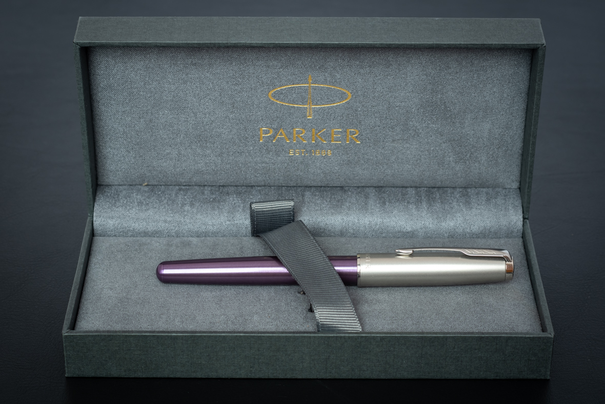 Ручка перьевая Parker Sonnet Sand Blasted Metal&Violet Lacquer от официального дилера Parker в Кызыле. Вы можете дополнительно заказать гравировку, которая подчеркнет Вашу оригинальность и придаст памятность статусному подарку. Все ручки Паркер поставляются в фирменном футляре.